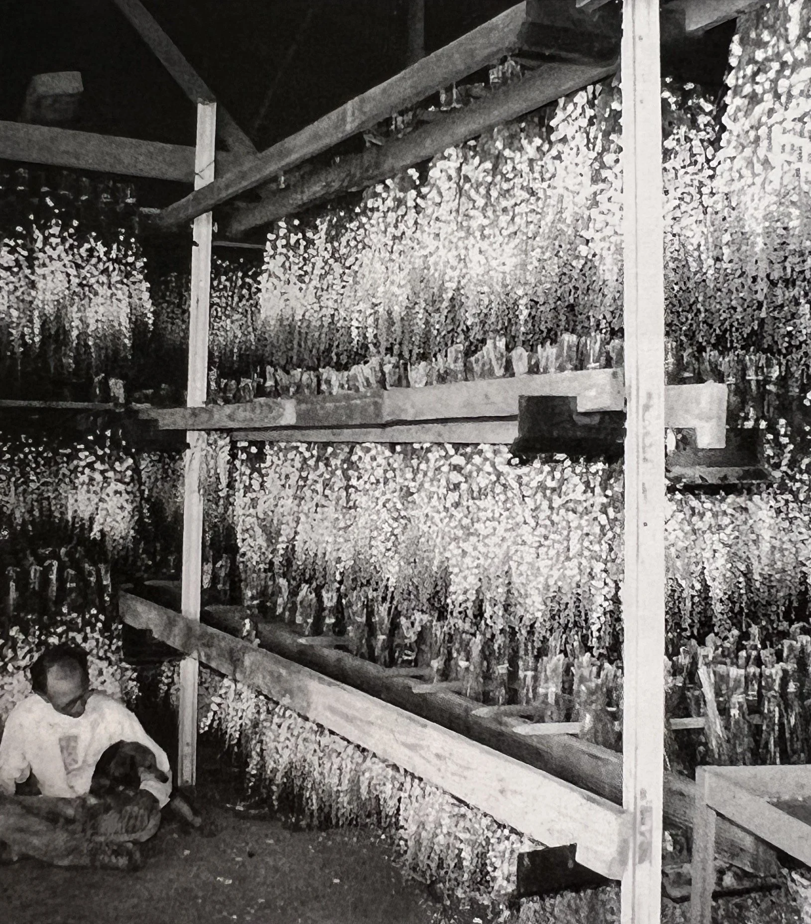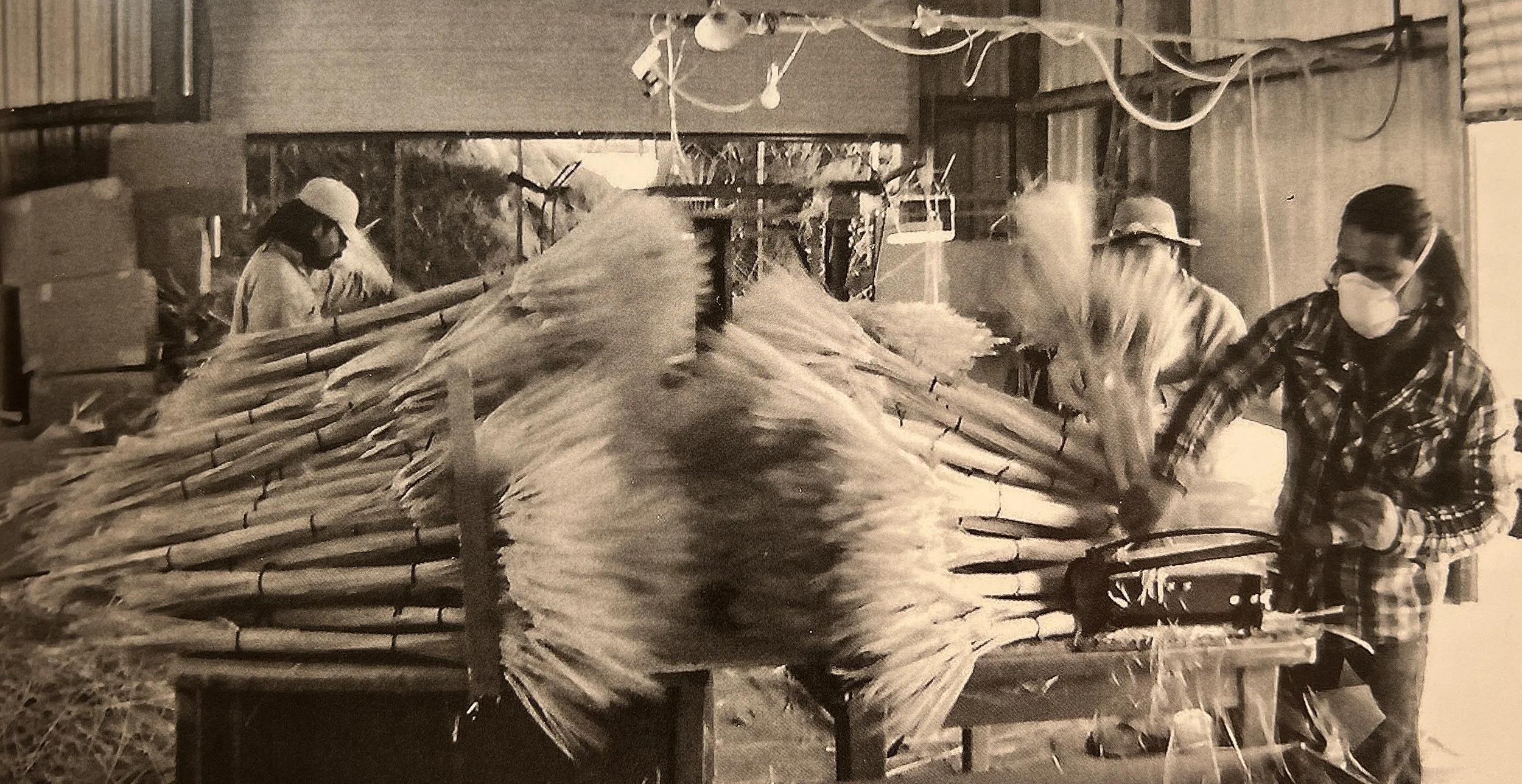 Although a modern facility, the farm uses an antique circa 1935 McCormick/Deering grain binder to accomplish their decorative wheat spring harvest. An old saying is, "If it ain't broke, don't fix it." The antique equipment is still doing a great job. Once the bundles are dried in the field, they are loaded into cotton trailers for storage until an order is received and further processing begins. Their storage barn holds 4,030-foot cotton trailers. The farm also supplies China millet, black beard wheat, and dried on-the-stem okra for special orders. They grow cutie pops, small multi-colored kernel corn, and cotton for decorative display. In the 1980s, the Japanese fresh flower growers disappeared, so the farm stepped up to include stock and larkspur for the fresh flower market and dried flower arrangements.